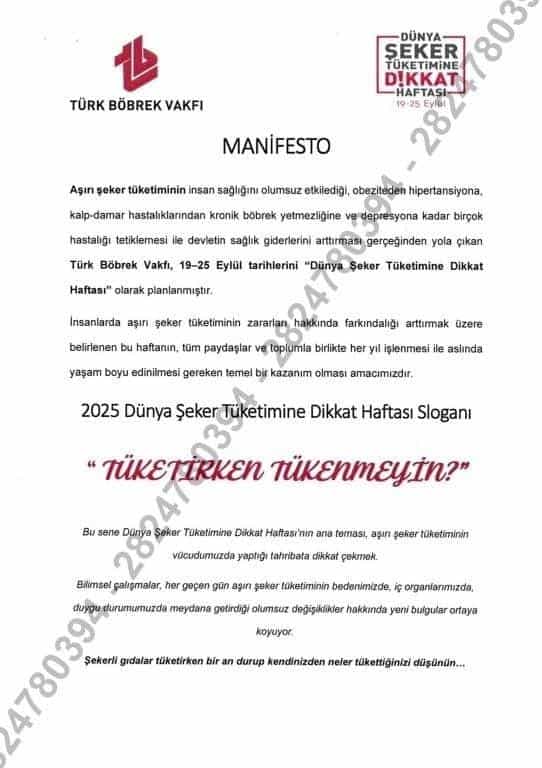 Dünya Şeker Tüketimine Dikkat Haftası'nın ana temasını "Tüketirken Tükenme" olarak belirlenerek Türk Böbrek Vakfı tarafından konuya dikkat çekilmiştir.
