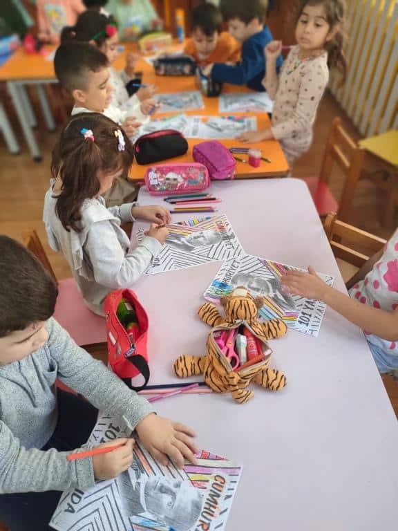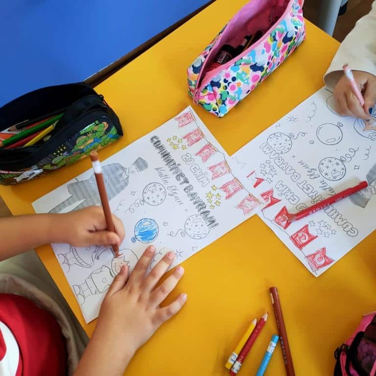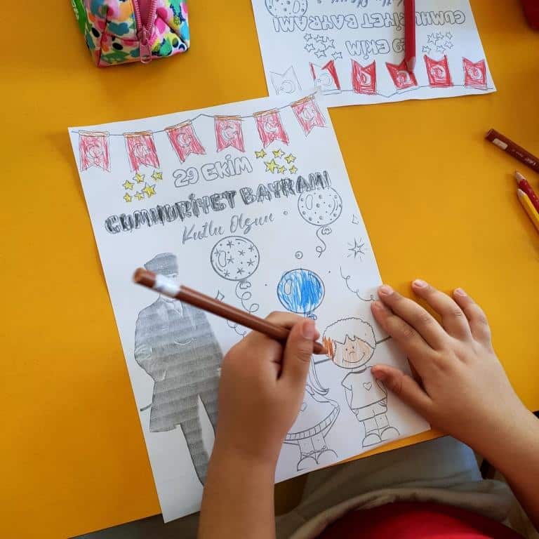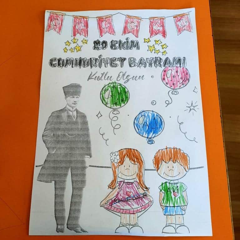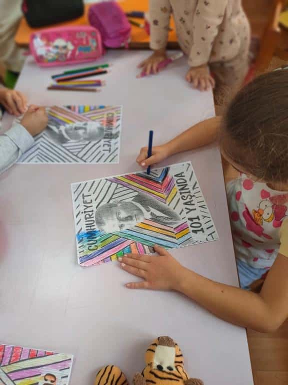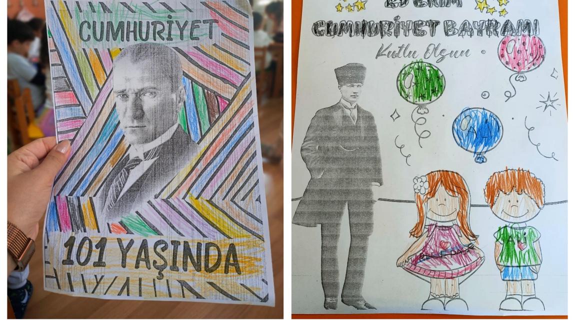 Görsel sanatlar dersinde Ekim ayı boyunca Cumhuriyet Bayramı boyama çalışmaları, parmak baskısı, kurdale işi çalışması, hayvanları koruma günü etkinliği yapıldı.