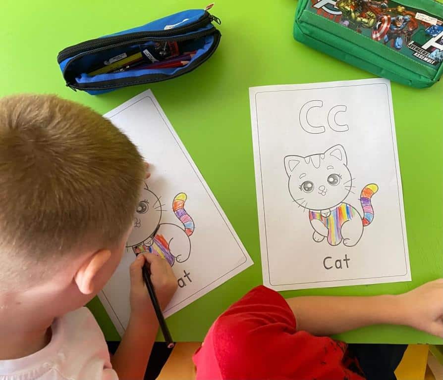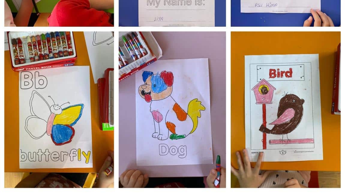 İngilizce dersinde adını söyleme, kedi, köpek, kuş, kelebek sözcüklerinin İngilizce karşılığı öğrenildi.