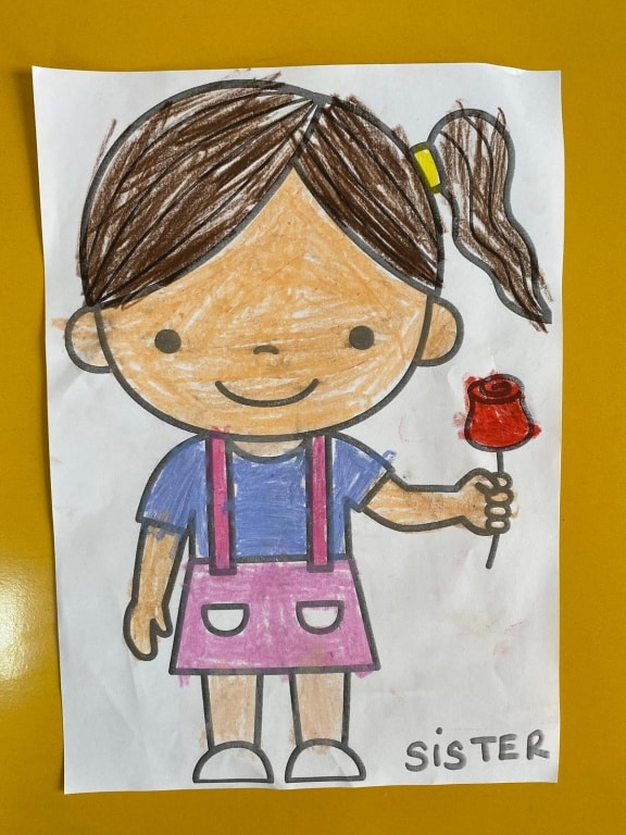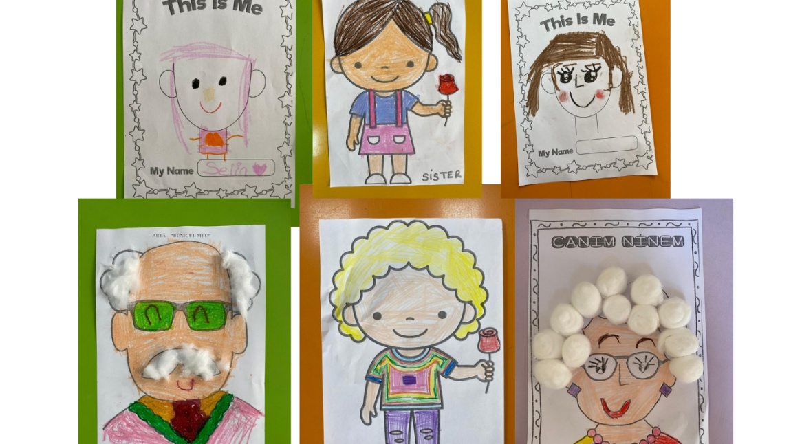 Aralık ayı İngilizce dersi AİLE başılığında “anne, baba, kız kardeş, erkek kardeş, ben, büyükanne, büyükbaba, amca, teyze, kuzen, bebek” ve ŞEKİLLER başlığında “ kare, daire, üçgen, dikdörtgen, oval, yıldız, kalp” öğrenildi.