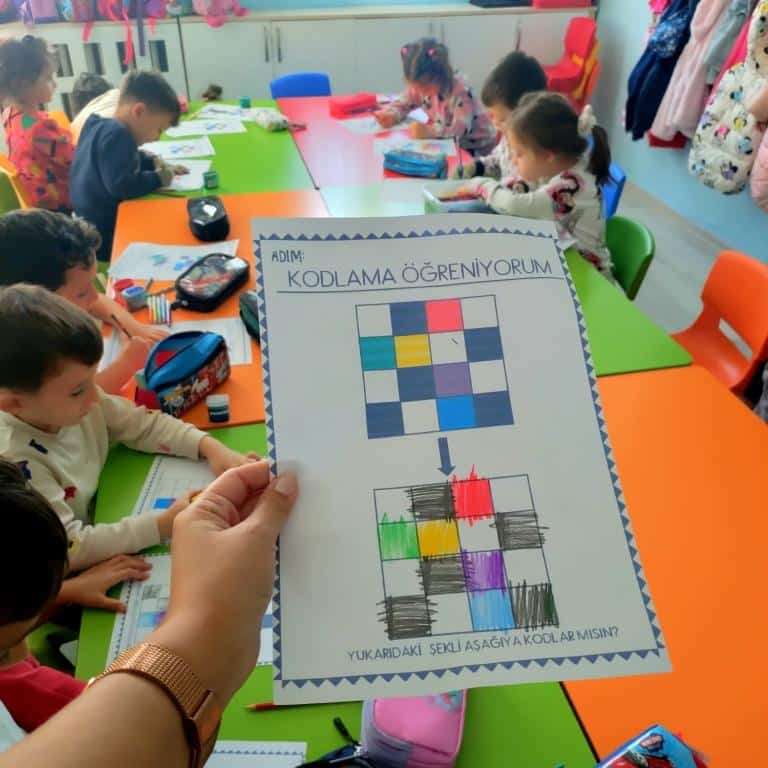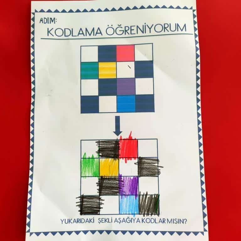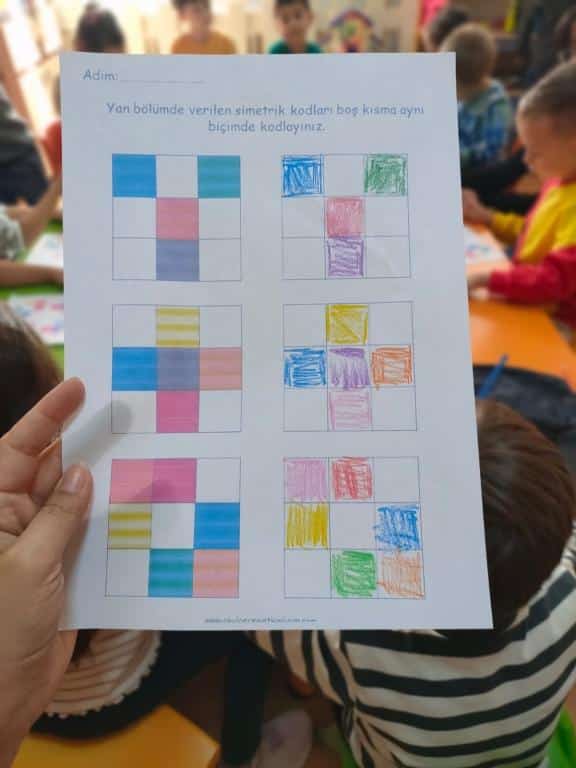 Robotik kodlama dersinde Ekim ayı içinde kodlama çalışmaları ve görsel algı simetri çalışmaları yapıldı.
